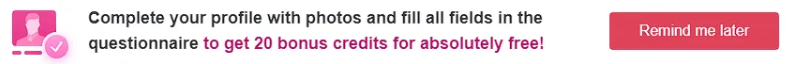 To receive 20 Bonus Credits you need to complete your profile, including the “about me” fields, and upload a photo as your avatar.